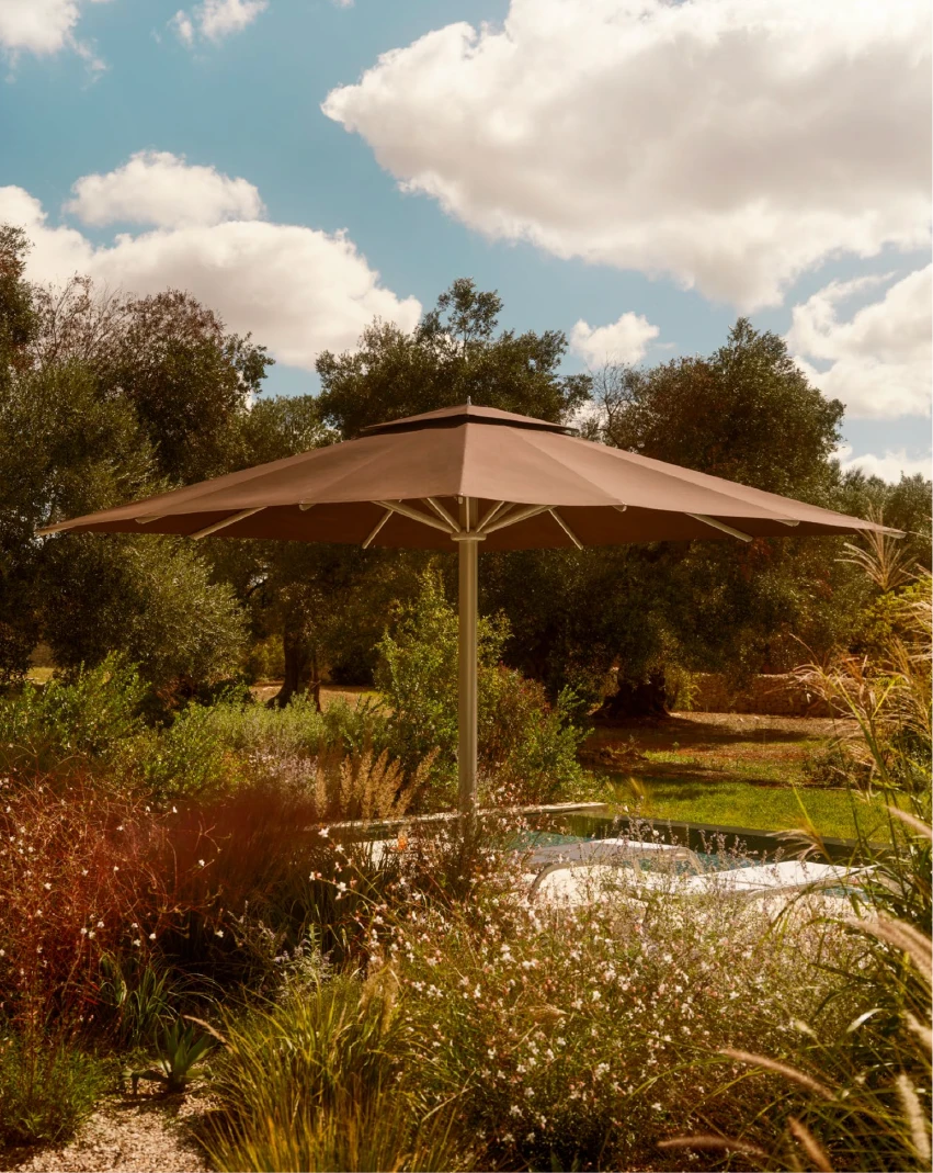 Ganimede Evo, Crema Outdoor'un en büyük ve en prestijli motorlu şemsiye modellerinden biridir. Teleskopik direk yapısı sayesinde şemsiye kapanırken yukarı doğru yükselir; böylece altındaki masa ve sandalyeleri toplamanıza gerek kalmaz. Tamamen motorize edilmiş sistemi, uzaktan kumanda ile yönetilir. RAL 9006 gövde rengi ve U224 kodlu özel kumaş seçenekleriyle sunulan bu model, otel ve geniş bahçe projeleri için profesyonel bir çözüm sunar.