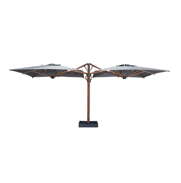 Dual T, tek bir taşıyıcı direk üzerinde karşılıklı (T-formunda) konumlandırılmış iki bağımsız şemsiye kanadından oluşan, simetrik ve dengeli bir sistemdir. Özellikle uzun yürüyüş yolları, restoranların ara bölmeleri veya dikdörtgen teraslar için ideal olan bu model, zemin işgalini minimize ederken gölgeyi maksimize eder. Yenilikçi "Motion" sistemi, her iki kanadın da gazlı piston yardımıyla yumuşak ve akıcı bir şekilde hareket etmesini sağlar. Modern mimariyle bütünleşen bu yapı, estetik ve fonksiyonelliği kusursuz bir dengede sunar.