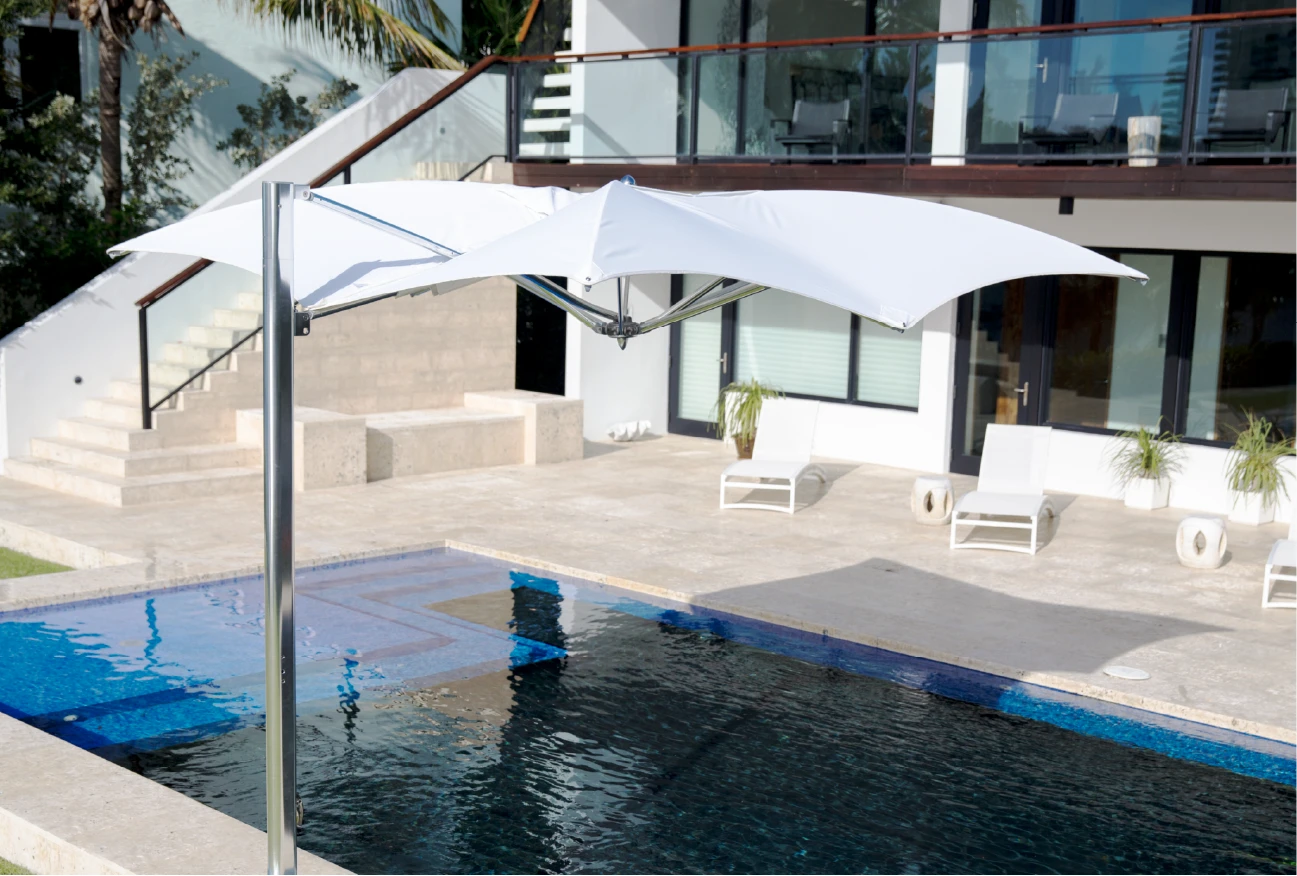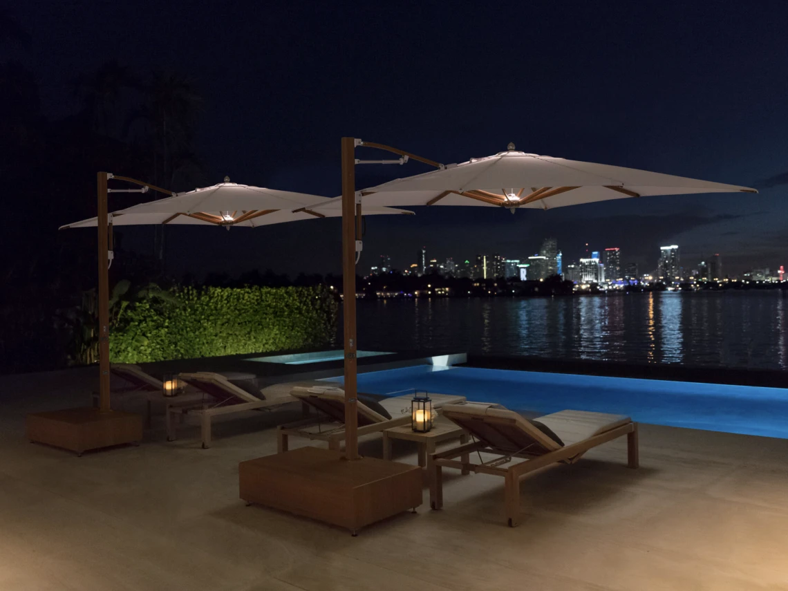 Cam Lock mekanizması ile 360 derece dönebilen şemsiye, otomatik teleskopik direği sayesinde altındaki mobilyalara temas etmeden kolayca açılıp kapanır. Tam bağımsız göbek sistemi ve dayanıklı parçaları uzun ömürlü kullanım garantiler. Gelişmiş otomasyon, Ambia LED aydınlatma ve kızılötesi ısıtıcı seçenekleriyle donatılabilen bu şemsiye, dış mekan keyfini her mevsim konforlu ve şık bir şekilde uzatmanıza olanak tanır.