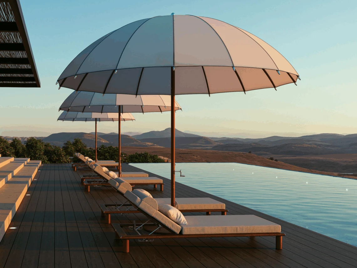 Tuuci Ocean Master MAX Bolero, kubbe şeklindeki gölgeliği ve heykelsi destek çubuklarıyla Akdeniz stilini rafine bir şekilde dış mekanlara taşır. Çarpıcı bir gölge sanatı sunan bu özel model, üstün işçilik ve yenilikçi mühendisliğin kusursuz birleşimidir. Denizcilik kalitesindeki sağlam yapısıyla öne çıkan şemsiye, mekanınıza eşsiz bir karakter kazandırır.