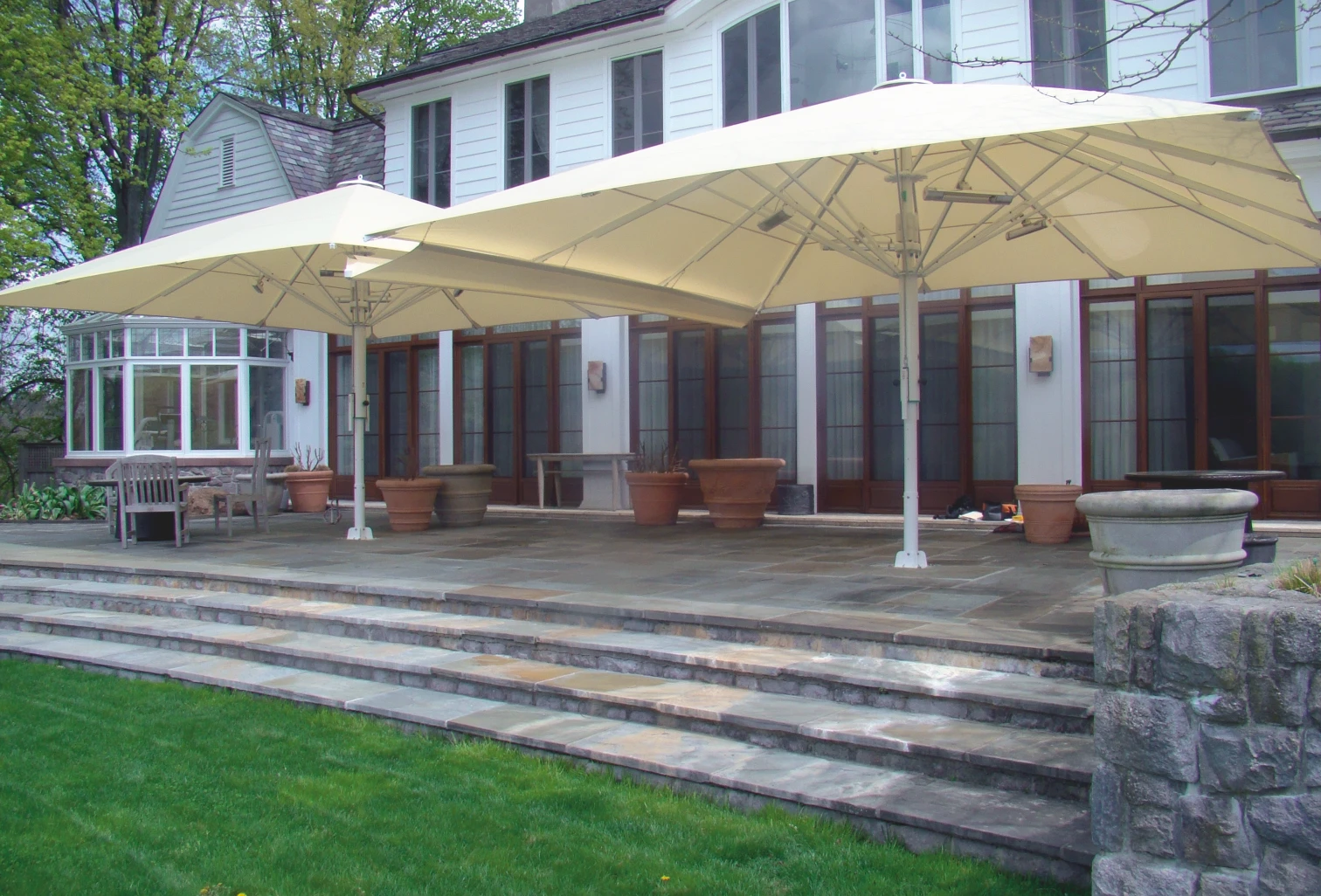 Jumbrella XL, standart serinin başarısını daha büyük ölçeklere taşıyarak, tek bir gövde ile 25 m² ile 49 m² arasındaki devasa alanları gölgelendirmek için geliştirilmiştir. Magnum serisine geçiş yapmadan geniş alan kapatmak isteyen işletmeler için ideal çözümdür. Boyutuna rağmen, özel dişli mekanizması (krank kolu veya elektrikli motor) sayesinde zahmetsizce kontrol edilebilir. Yapısı, ağır yükler ve zorlu hava koşulları altında dahi formunu koruyacak şekilde mühendislik harikası olarak tasarlanmıştır.