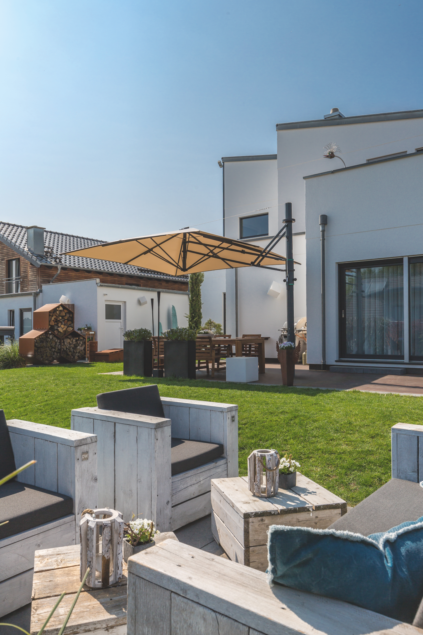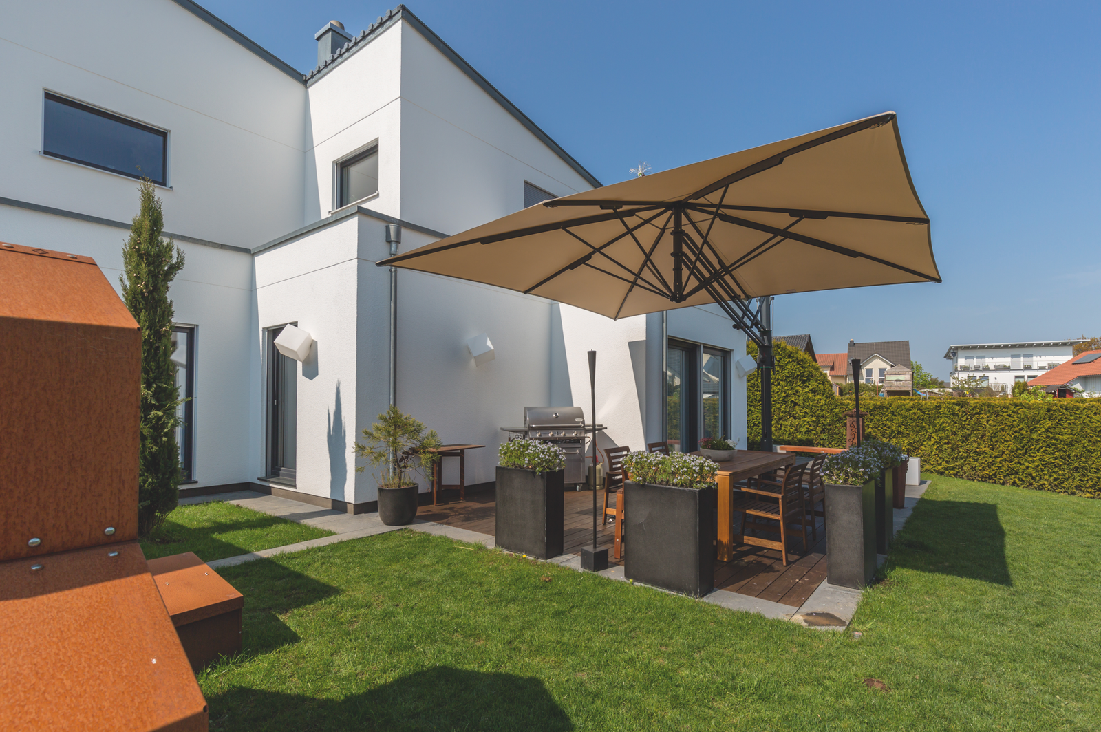 Alan Tasarrufu: Eksantrik direk yapısı sayesinde şemsiye altındaki tüm alan mobilya yerleşimi için serbest kalır.
