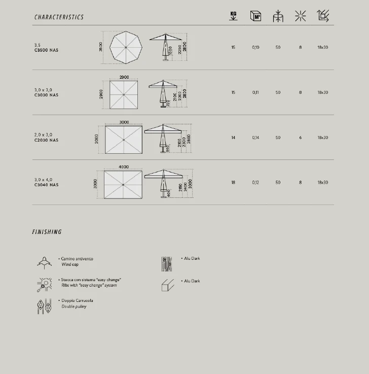 Napoli Standard, yıllardır sağlamlığı ve her türlü ortama uyum sağlayan çok yönlülüğü ile takdir edilen, Scolaro'nun en köklü orta direk modellerinden biridir. Antrasit gri (Dark) epoksi toz boyalı alüminyum gövdesi, çizilmelere ve dış hava koşullarına karşı üstün direnç gösterir. 50 mm çapındaki güçlü direği ve 20x30 mm kalınlığındaki kolları ile yoğun kullanıma maruz kalan kafe ve restoranlar için güçlü bir performans sunar.
