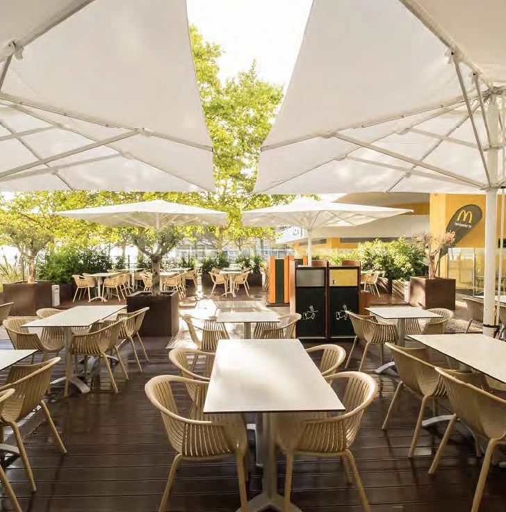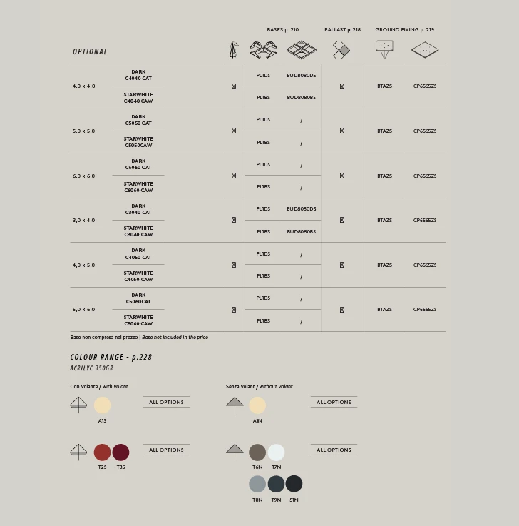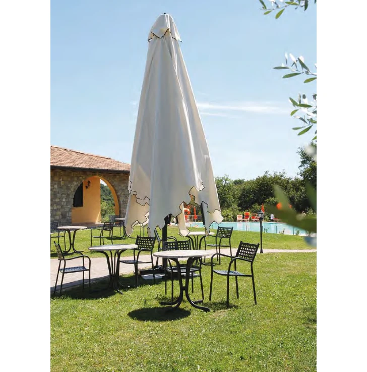 Capri, minimum yer kaplayarak maksimum alanı (6x6 metreye kadar) gölgelemek için tasarlanmış dev bir alüminyum şemsiyedir. Özellikle geniş restoran terasları ve kamusal alanlar için ideal olan bu model, teleskopik sistemi sayesinde devasa boyutuna rağmen kolayca yönetilebilir. İster "Dark" antrasit, ister "Starwhite" beyaz versiyonu olsun, Capri'nin güçlendirilmiş iç yapısı ve kalın profilleri, onu dış mekanın en zorlu şartlarına karşı dayanıklı bir kale haline getirir.