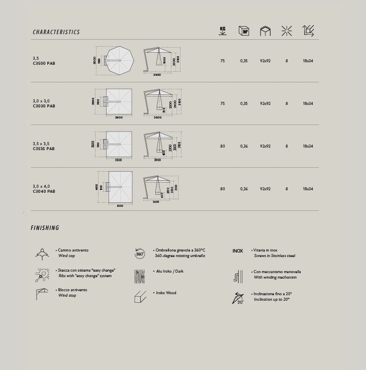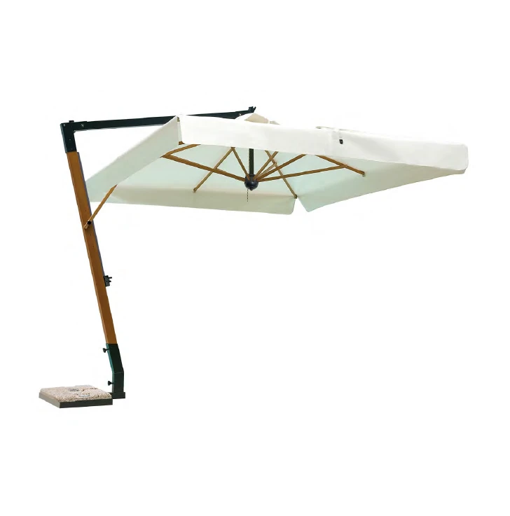 Malzeme: Özel ahşap efektli Alüminyum direk ve gerçek Iroko kollar.