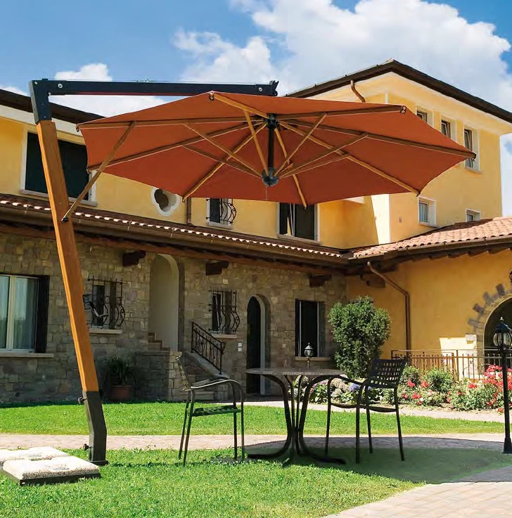30 yılı aşkın süredir üretilen ve dünya çapında binlerce adet satılan Palladio Braccio, Scolaro'nun tecrübesini ve geleneğini simgeler. Klasik Palladio tasarımının yandan gövdeli versiyonu olan bu model, zaman içinde güncellenerek "Iroko efektli Alüminyum" direk ile donatılmıştır. Bu sayede klasik ahşap görünümü korunurken, yapının ömrü ve dayanıklılığı maksimize edilmiştir. Gerçek Iroko ahşap kollar ve klasik tasarım, onu zamansız bir ikon haline getirir.