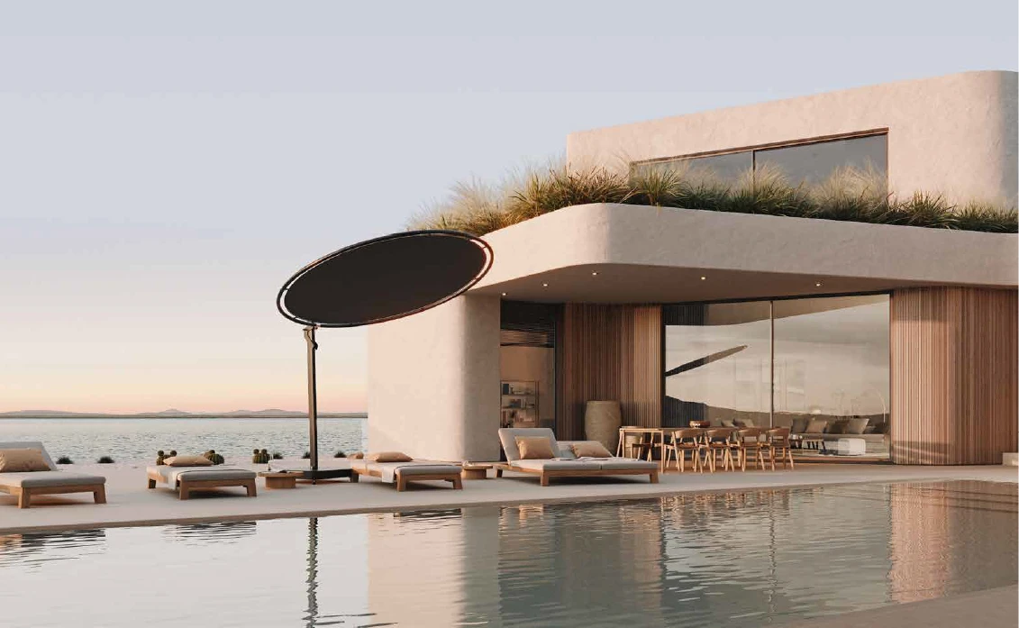 Eclipsum UX, dev bir halka formundaki tasarımıyla gölgelendirmeyi mimari bir sanat eserine dönüştürür. Kozmik bir tutulmadan ilham alan bu model, yuvarlak hatları ve gergin kumaş yapısı ile dikkat çekici bir odak noktası oluşturur. Estetik duruşunun yanı sıra, dönme ekseni ve yükseklik ayarı sayesinde fonksiyonellikten ödün vermez. "Design Object" olarak nitelendirilen Eclipsum, sıradanlığın ötesine geçmek isteyen mekanlar için üretilmiştir.