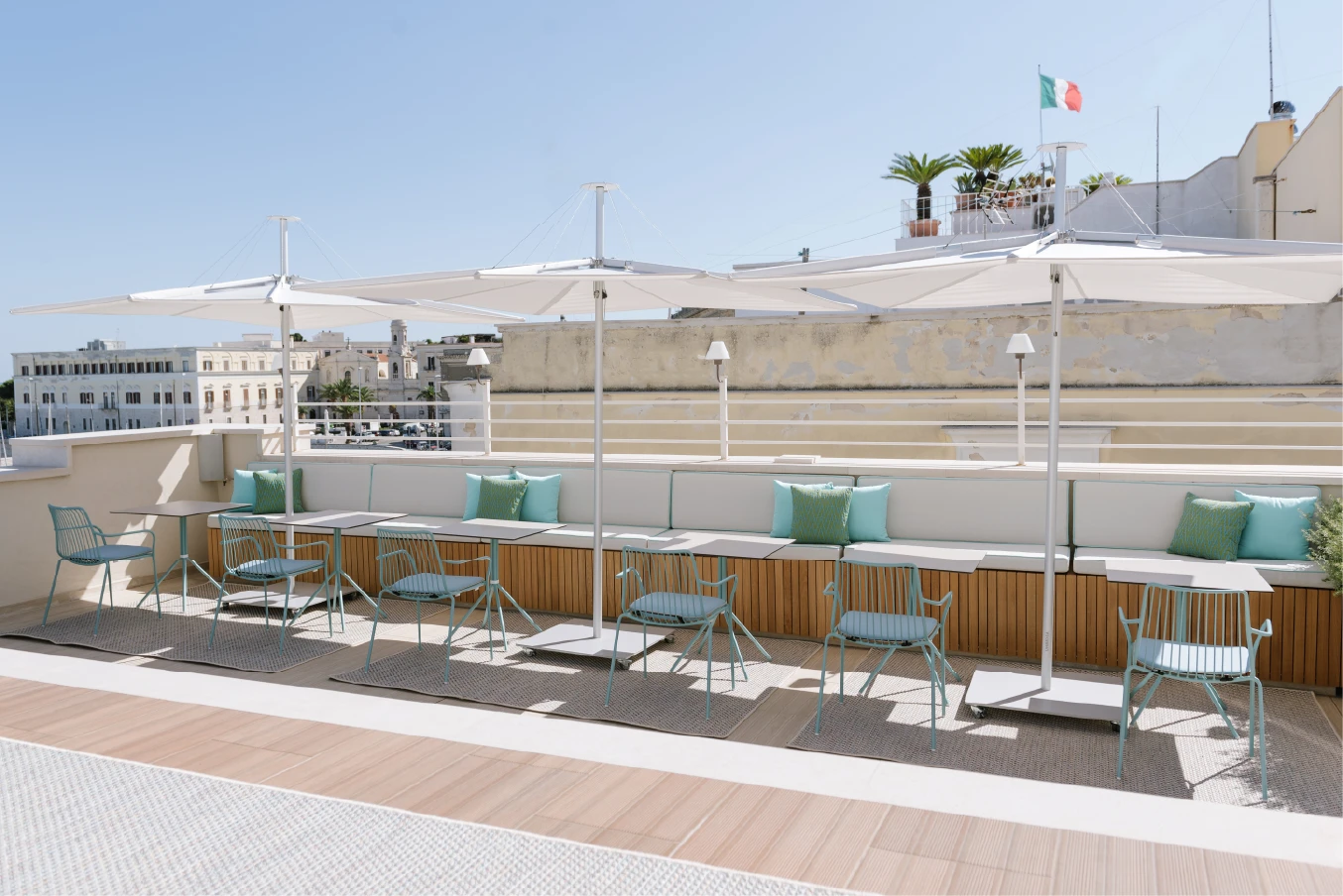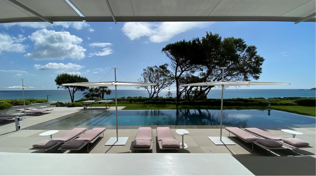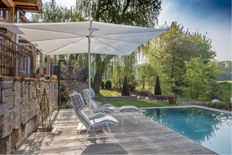 Infina UX, klasik orta direkli şemsiye formunun en sadeleştirilmiş ve modern yorumudur. Dışarıdan bakıldığında hiçbir makara, ip veya teknik detay görünmez; tasarım tamamen saf ve pürüzsüzdür. Düz tasarımı, modern mimari ile kusursuz bir uyum içindedir.