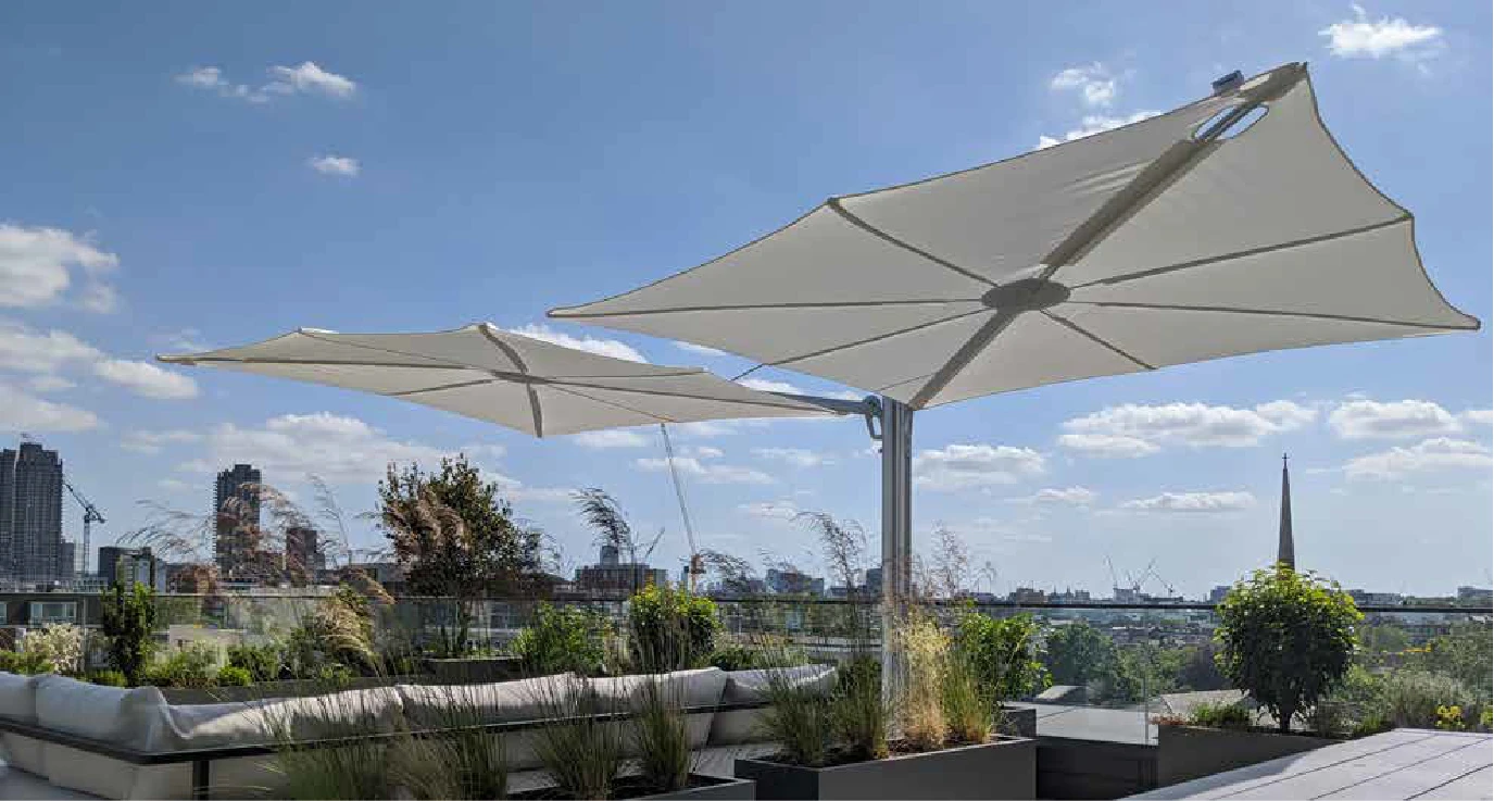 Spectra, Umbrosa'nın imzası haline gelen, sıfır eğimli düz tasarımıyla rüzgara karşı üstün direnç gösteren bir modeldir. Yelpaze şeklinde açılıp kapanan zekice kurgulanmış mekanizması, kullanılmadığında direğe yaslanarak yok denecek kadar az yer kaplar. Modüler yapısı sayesinde tek bir direk üzerinde 1, 2 veya 4 adet şemsiye kullanılarak devasa alanlar gölgelendirilebilir.