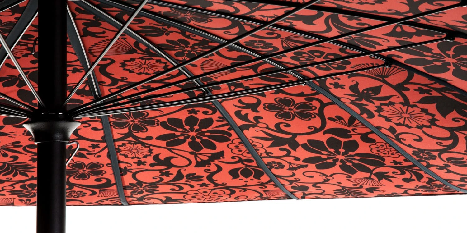 Dünyaca ünlü tasarımcı Marcel Wanders imzalı Geisha, Japon kültürünün zarafetini ve gizemini yansıtır. Dışarıdan sade görünen şemsiye, içine girildiğinde stilize edilmiş çiçek motifleriyle dolu büyüleyici bir dünya sunar. Şemsiyenin tepesindeki metal fiyonk detayı, bir geyşanın kimonosundaki kuşak bağını simgeler. 2.5 metre çapındaki bu tasarım, mekanlara sanatsal ve dingin bir hava katar.