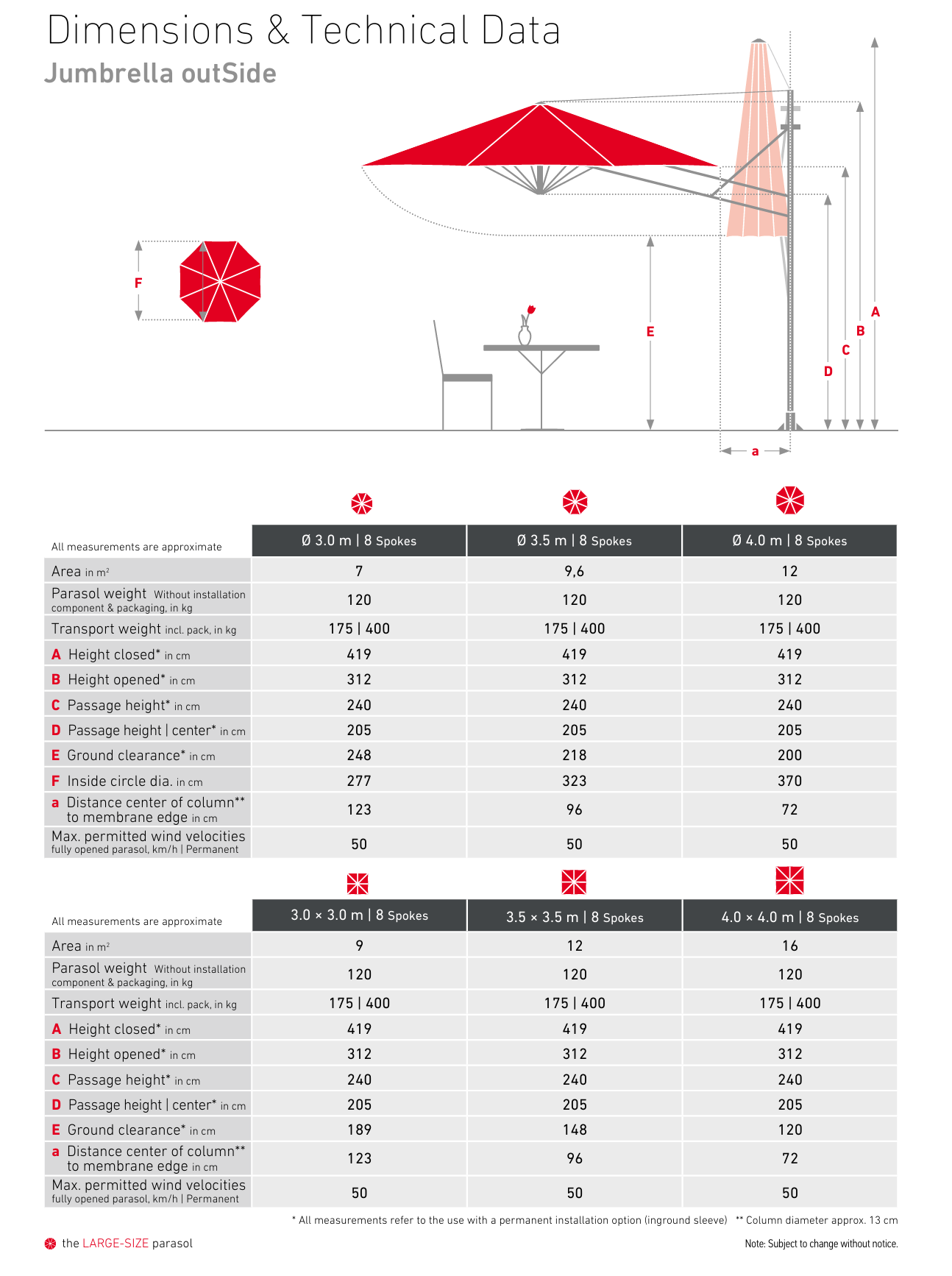 Geniş Kapsama: 7 farklı boyut seçeneği ile (yuvarlak ve kare) 49 m²'ye kadar kesintisiz gölge alanı sunar.
