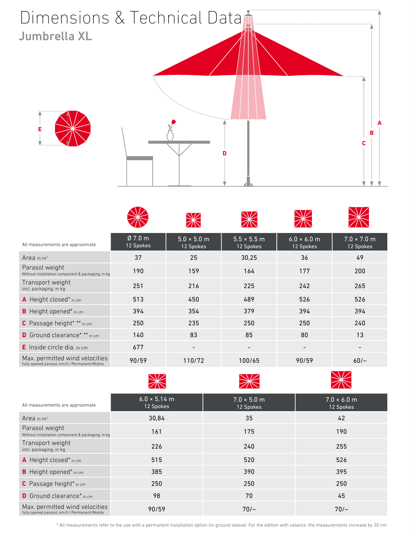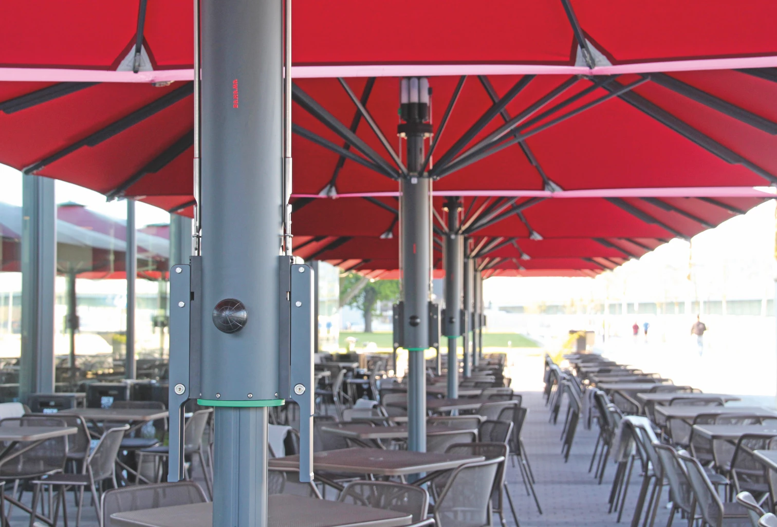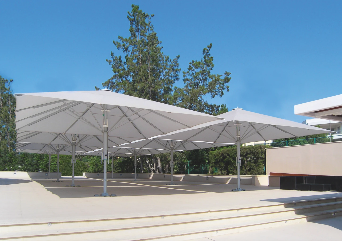 Jumbrella XL, standart serinin başarısını daha büyük ölçeklere taşıyarak, tek bir gövde ile 25 m² ile 49 m² arasındaki devasa alanları gölgelendirmek için geliştirilmiştir. Magnum serisine geçiş yapmadan geniş alan kapatmak isteyen işletmeler için ideal çözümdür. Boyutuna rağmen, özel dişli mekanizması (krank kolu veya elektrikli motor) sayesinde zahmetsizce kontrol edilebilir. Yapısı, ağır yükler ve zorlu hava koşulları altında dahi formunu koruyacak şekilde mühendislik harikası olarak tasarlanmıştır.